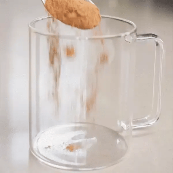 Ajoutez 1 cuillère à soupe dans une tasse et versez de l'eau ou du lait (chaud ou froid)